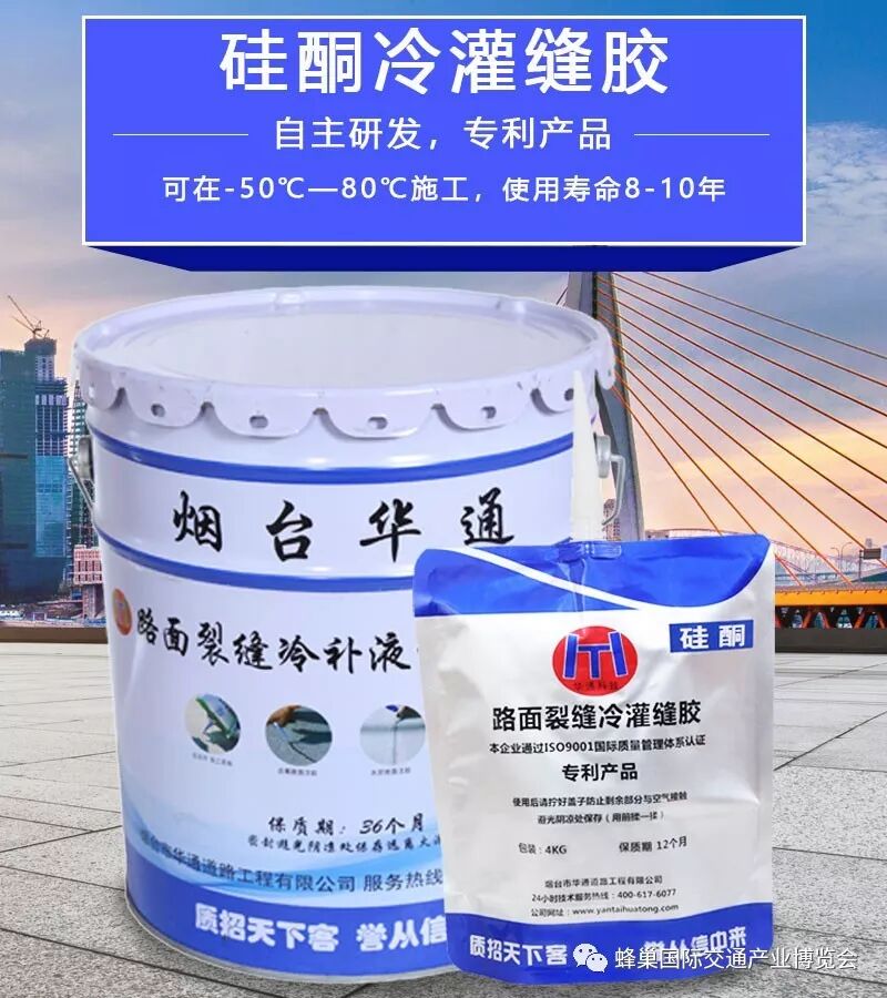 华通牌冷补液体灌缝胶是烟台华通公司研发的具有自主产权的单组分新型油性有机硅/聚氨酯/改性沥青冷补液体灌缝产品,适用于水泥或沥青路面、广场、机场跑道、屋面、地下室的伸缩缝、沉降缝、切割缝及新修水泥路面施工缝等病害裂(接)缝的粘接密封。
