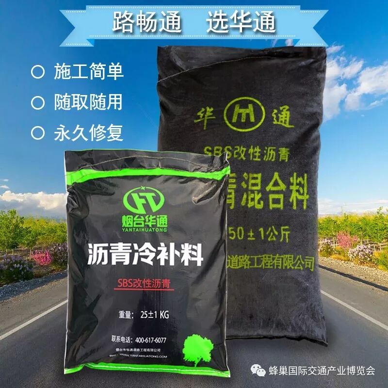 “华通沥青冷补料”是一种高科技道路修补材料,可在-30℃至50℃之间适用全天候使用,适合在任何天气和环境下修补各种不同类型的道路面层,如沥青、水泥混凝土道路、停车场、机场跑道、桥梁伸缩缝等。