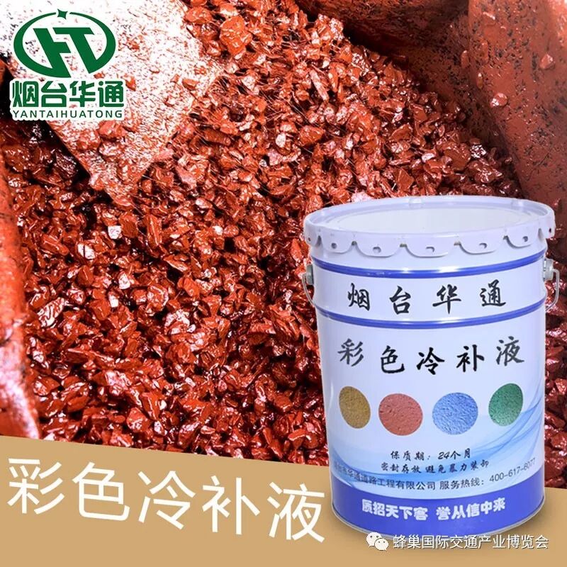 彩色沥青冷补料是华通公司自主研发的具有独立知识产权的高科技彩色路面养护材料,粘度大,性能稳定。无需现场加温搅拌,拆袋并人工摊铺后采用压路机或夯实机压实即可,受紫外线辐射色度衰减轻,色泽鲜艳,色度稳定性强。