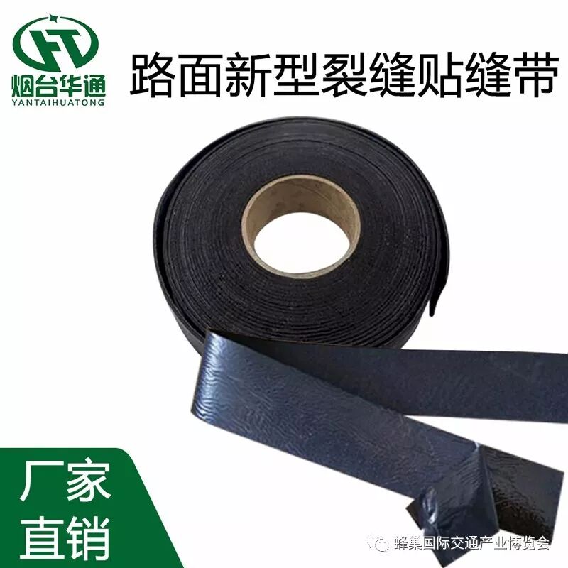 路面新型裂缝贴缝带是烟台华通公司自主研发的新型自粘式路面贴缝带,材质为沥青基,具有耐磨性好、封水性强、成本低廉、弹性大,可根据裂缝走向随意转弯粘贴、施工简单等优点。